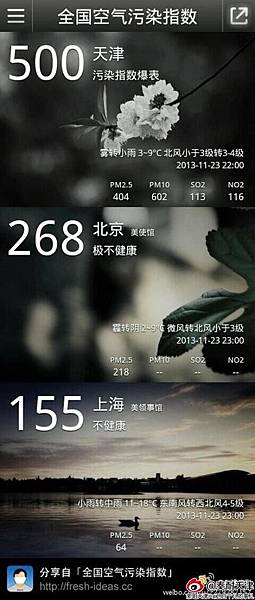 11月23日空氣最差十城:保定石家莊邢台指數「爆表」