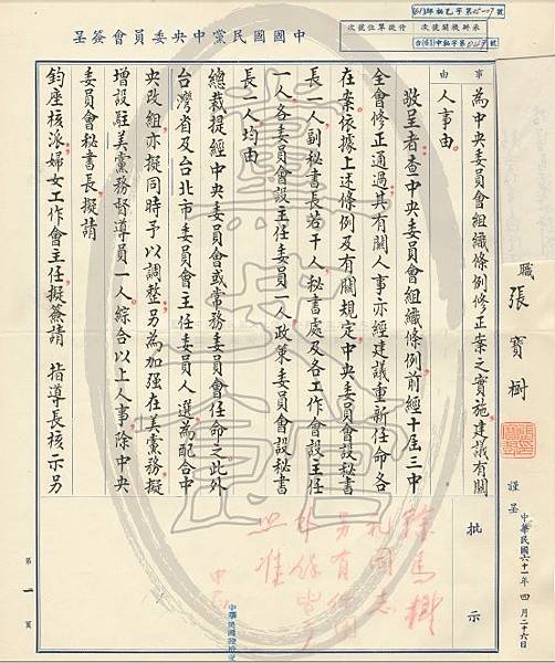 一份是1952年1月30日,指示應該提拔青年同志。(中國國民黨黨史館)