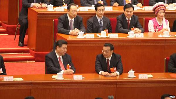 習近平(左)在主席台上和李克強交談(美國之音東方拍攝)