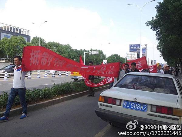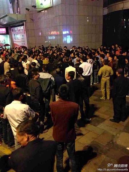 31日早晨,數十名小販,在步行街一帶打著「抵制城管暴力執法」的橫幅遊行,小販們邊走邊喊著口號「城管打人,暴力執法」,遊行隊伍經過橫湖橋、購物中心,最後被警方勸籲離開。(網絡圖片)