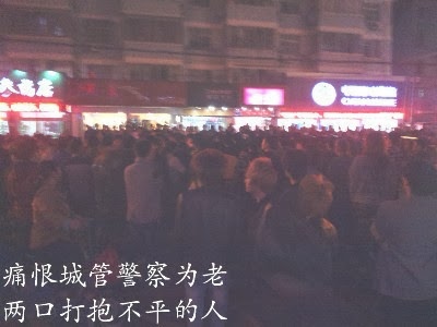 10月28日,廣東省韶關市湞江區站南路因商販被城管毆打,引發大量民眾不滿,圍堵城管,導致當地交通堵塞了三個小時,並要出動防暴警察解圍。(網絡圖片)