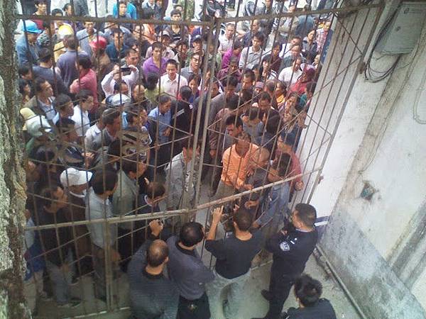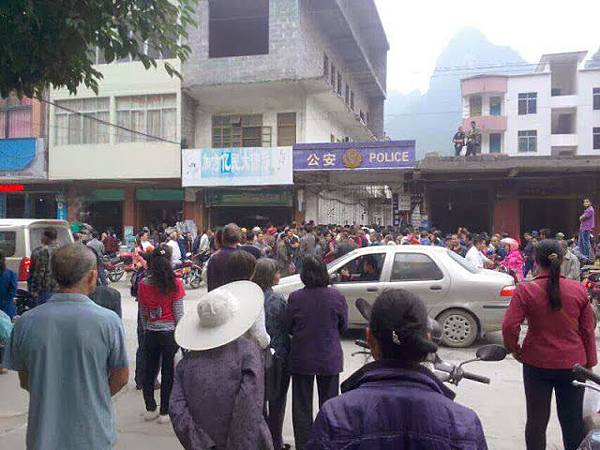 30日,廣西南寧市馬山縣加方鄉市集,三名交警追打一商販。圍觀群眾被激怒,紛紛圍堵、指責,交警逃進派出所避難。民眾尾隨其後來到派出所,派出所慌忙關閉大門迴避,群眾擾攘了一個多小時,才散去。(網絡圖片)