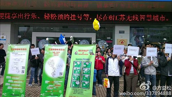 戴先生表示,前期他們已經去過江蘇省通信局、工信部、媒體等正規途徑反映過江蘇移動的違法情況,但都沒有任何答覆。最後,他們被迫選擇了街頭維權。10月23日,他們20多人到南京鼓樓集體立案,法院要求代理人的街道辦或單位開介紹信方可立案。法院只收了一個人的材料,至今沒有答覆可否立案。