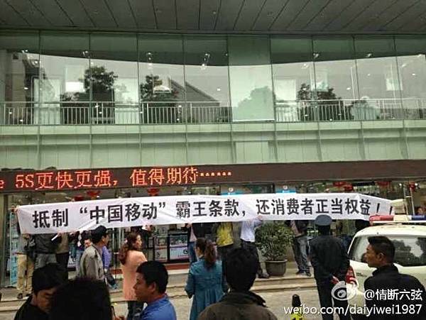 11月3日,江蘇常州有數十名用戶來到晉陵路「中國移動」主廳現場,維權者打著「移動無誠信 要求公平對待05卡」的橫幅及「欺騙用戶 賠我損失」、「反對壟斷 拒絕暴利」的牌子,抗議公司損害用戶利益的違法行為。
