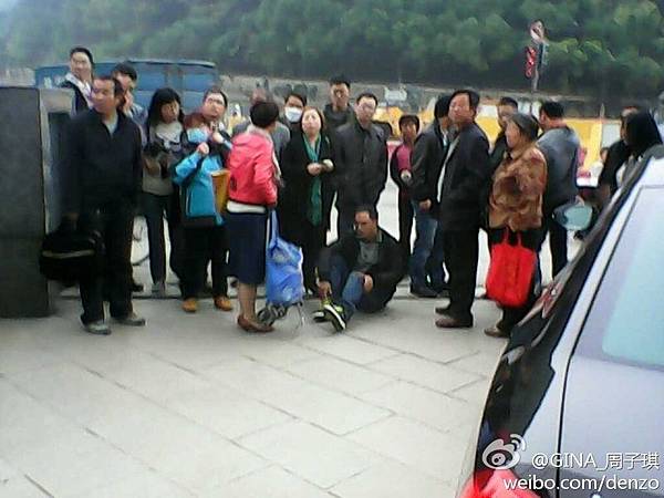 在維權過程中,有一黑色轎車開進維權人群中,撞人之後逃離。(網絡圖片)