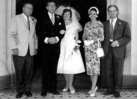 澳洲乳癌大使韓特笙Sara Henderson(中,C)和丈夫一九六零年在香港結婚,在淺水灣酒店擺酒,前廉政專員姬達夫婦(右一、二)任證婚人。