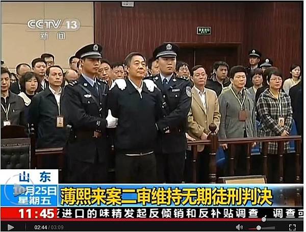 2013年9月22日,薄熙來被濟南市中級法院一審以受賄罪、貪污罪、濫用職權罪判處無期徒刑。10月25日,薄熙來受賄、貪污、濫用職權案在山東高院二審宣判,維持一審原判。