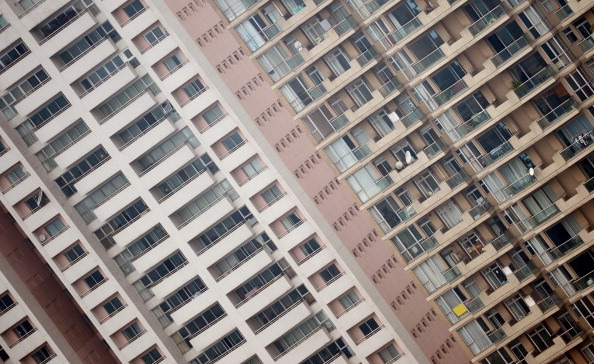 大陸樓市出現一線城市有價無市;三、四線城市泡沫明顯,多處已經開始破裂,已成風險集中圈。有專家稱,2014房價將跌破底線,甚至跌去80%。圖為今年上海市一棟住宅高樓。(AFP/Getty Images)