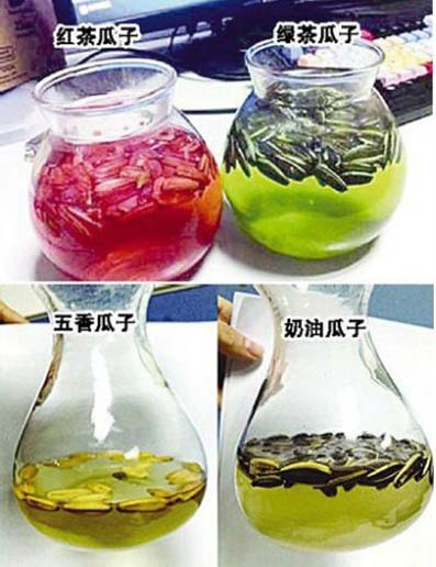 上海電視台曝光安徽宣城瓜子加工廠將染色劑和滑石粉等有害物質添加到瓜子中。據上視《七分之一》報導,目前我國大部分炒貨製作過程中都違規使用明礬,工業滑石粉。明礬可以殺死腦細胞,嚴重的還會引起腦萎縮、癡呆等症狀。而工業滑石粉含石棉,致癌,潛伏期可達二十年以上。炒貨你還敢吃麼?