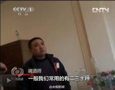 四川一些白酒生產廠,不看不知道,一看嚇一跳,所謂糧食酒竟是酒精+水+香精。調酒師將純度95%的食用酒精變成各種口感的"佳釀",還說這是行業規則,沒有一家酒廠不添加。質監部門稱還沒有檢測標準和方法來應對。糧食酒,沒糧食!