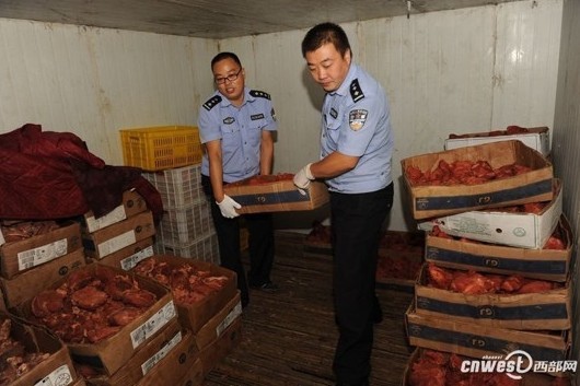 經查,2009年以來,一個特大製售假羊肉犯罪團伙山東購入狐狸、水貂、老鼠等未經檢驗檢疫的動物肉製品,添加明膠、胭脂紅、硝鹽等冒充羊肉銷售至蘇、滬等地農貿市場,案值1000餘萬元。以廉價鴨肉生產有毒牛羊肉捲