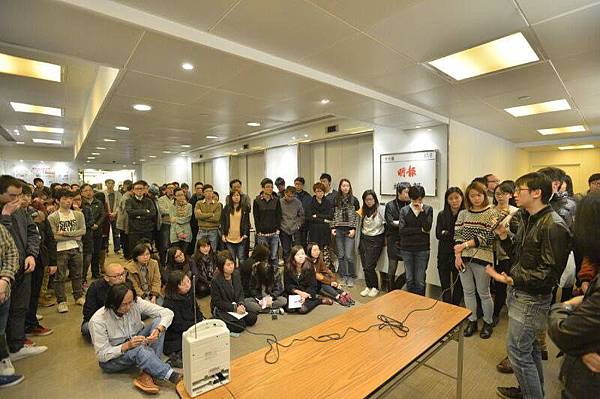 《明報》員工關注組傍晚召開大會,共有過百名員工出席。(明報員工關注組FACEBOOK)