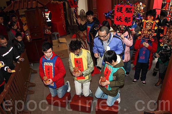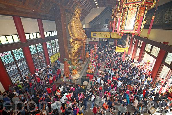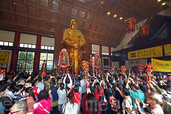 大年初三俗稱赤口,傳統上市民不會拜年;因此數萬香港市民一早到車公廟參拜,廟內香火鼎盛,善信除了上香外,亦有轉風車以及擊鼓祈福。(潘在殊/大紀元)