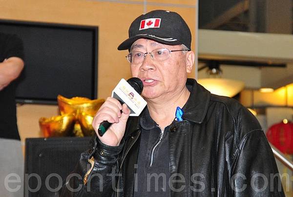 多倫多時事評論員江大惠在記者會上發言(周行。大紀元)