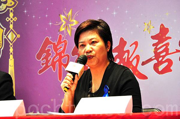 港加聯代表馮玉蘭在記者會上發言(周行。大紀元)