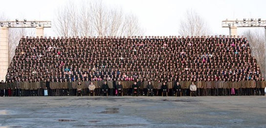 公開發布的照片顯示,到會的分組長大概有六、七千人,其中不乏來自農村的大嫂大叔大嬸大伯,個個面帶桃花又面黃肌瘦。他們分成十撥先後跟金正恩合影,每撥都千八百人,密密麻麻由高到低靠前扎堆站隊,小山似的,陣勢蔚盛而唬人。