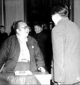潘光旦見毛澤東來到自己面前,遂拄著枴杖從座位上欠起身,用握著煙斗的另一隻手撐著桌面,微笑著與毛搭話……這幅照片以瞬間的定格,反映了特定時期共產黨領袖與知識份子尤其著名知識份子間的微妙關係。但短短幾年後知識份子即「厄運臨頭」,連被毛澤東如此禮遇的潘先生也沒能倖免!
