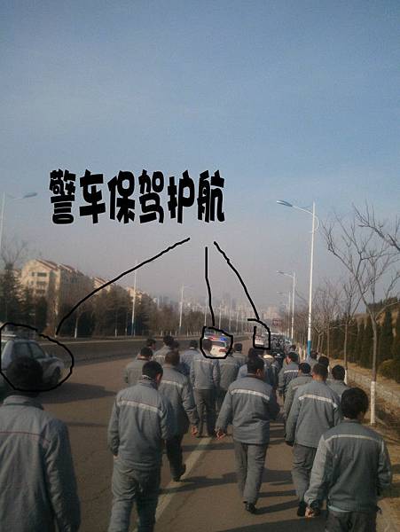 因工資被拖欠2個月及養老保險被拖欠8個月,2月14日,山東省威海三進船業有限公司600名工人徒步26公里,到威海市政府上訪,有100多名員警在現場戒備,附近交通一度癱瘓。