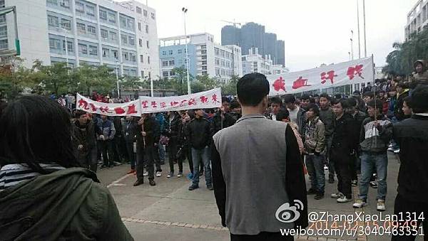 有老員工對學生的行動非常支持,他說:「惠州比亞迪不僅壓搾學生的工資,也壓搾老員工的工資。學生為了多掙點錢,過年都不回家,為比亞迪辛辛苦苦的工作,一個月才掙到2千多塊。你們認為這樣的公司能好起來嗎?真讓人寒心。」