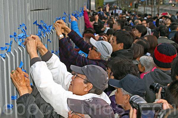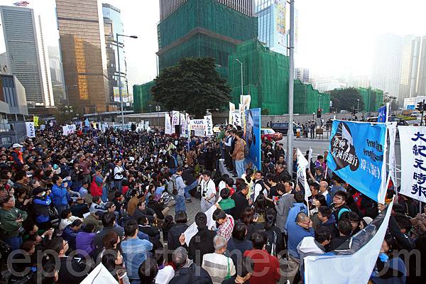 遺憾的是,在香港遭到打壓最烈的大紀元,事先在當日集會上要求發言的申請被婉拒。香港電視媒體一直以來都在有意過濾有關法輪功和大紀元的新聞。昨天集會現場,因多家電子傳媒現場轉播不願見到大紀元標語,故要求現場工作人員遮住在台前的大紀元標語。有員工聽到在場一些年青的市民都不認同這種做法,指集會不是反滅聲嗎?現在反而要滅其他傳媒的聲音?