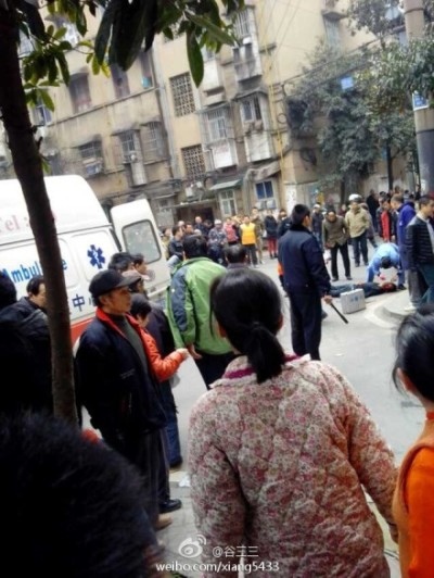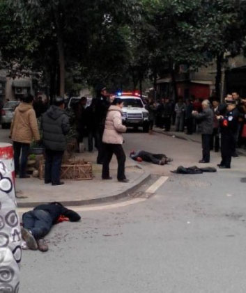 3月14日上午長沙開福區伍家嶺國慶新村烤餅店舖發生砍人案,並殃及附近路人,有現場目擊者稱造成5死6傷。(網絡圖片)