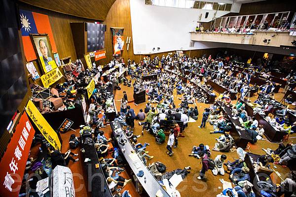 「反黑箱服貿」的抗議團體佔據立法院議場表訴求,人權律師團進入議場,將近有300位律師加入行列聲援學生提供法律後盾。(黑色島國青年陣線臉書)