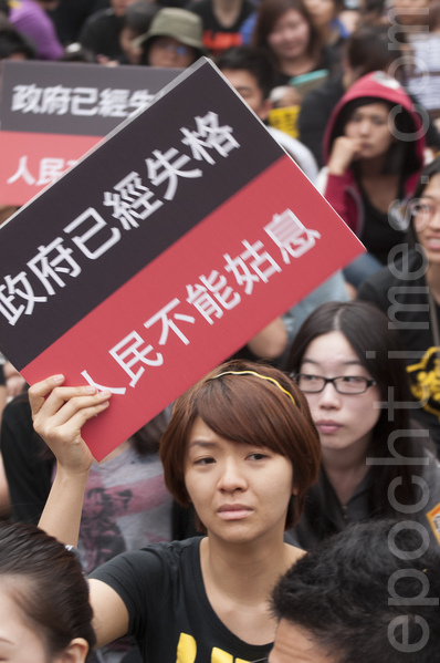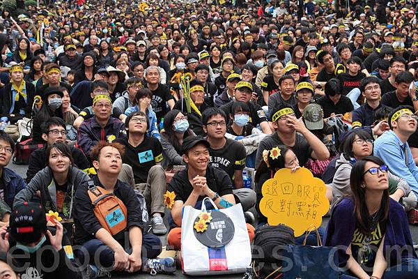 凱道反服貿,現場的民眾通過高素質的展現,反對馬政府一意孤行,罔顧民意,強行為財團通過的服貿協議,反對者聲稱,此舉將會衝擊台灣民生、文化、教育及國家通訊等危害,並且譴責政府鎮壓群眾的暴力行為。(王仁駿/大紀元)