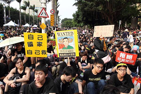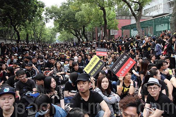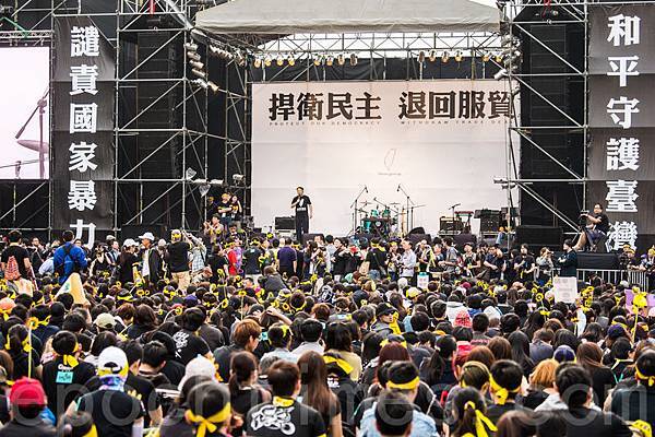 台灣「反黑箱服貿」學生與民眾號召3月30日至少10萬人身穿黑衣到總統府前的凱達格蘭大道表達「捍衛民主、退回服貿」訴求,在短短三天內,有超過50萬民眾加入聲援,在晚間七點多和平散場,在凱道沒留下任何垃圾。