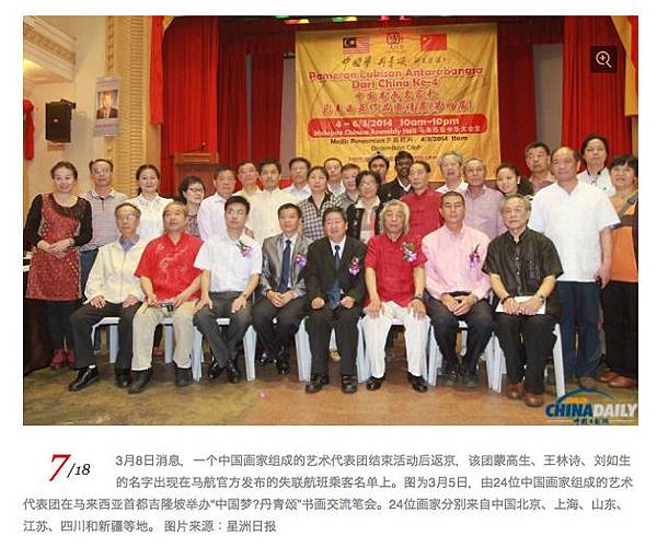常年在馬來西亞吉隆坡獨立廣場講真相的法輪功學員向《大紀元》表示,馬航事件發生後,從網上發出的有關搭乘失事航班的中國畫家組成的藝術代表團的照片中,該學員認出了其中一位穿著紅衣白褲的男子。該學員說:「3月7日的下午我在獨立廣場發資料的時候,就遇到這些人。我對圖片中第一排紅衣服白褲子的人印象很深。他沒有接我資料,還不讓別人要。」