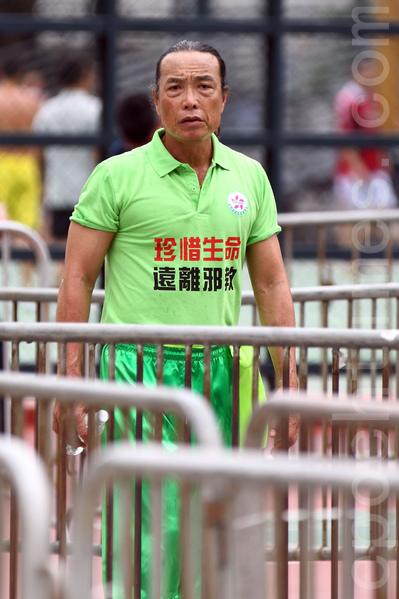 此外,上周日(4月20日)香港法輪功學員在九龍長沙灣遊樂場舉行集會遊行,一批青關會成員到場試圖搗亂,除了用擴音器辱罵,還請來龍獅隊,其中一名頭目被發現為夏國璋龍獅團的成員。