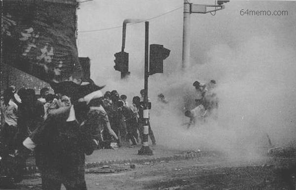 有關六部口中共坦克輾壓學生的經過,當時也是大四學生、北京體育學院方政是這樣說的,6月4日凌晨,他隨著從天安門廣場撤退的學生走到六部口附近,後面傳來爆炸聲,隨後濃煙滾滾,很嗆人。突然一顆毒氣彈就在他身邊爆炸,黃綠色濃煙一下子籠罩著2-3米的範圍,讓人感覺到頭暈、窒息。他旁邊的一位女學生連熏帶嚇動不了了,他把她扶到邊上,剛一轉身時,眼睛的餘光看到一輛坦克正急速行駛過來,他趕緊把學妹推靠到護攔上,自己躲閃不及倒地,坦克履帶從他的雙腿上碾過,褲子被捲到履帶的鏈條上面,身體在地下被拖行了一段距離,頭部、後背、肩部都被擦傷,拖行中能感覺到頭、身體咚咚撞地的震動,最後腿撕拉掉了,褲子也扯爛了,他才從履帶上掉下來了,掉下來之後,他滾到了路邊靠到護攔上,有照片為證。他後來被送到北京積水潭醫院,雙下肢截肢,右則截肢到大腿上部,左腿到膝蓋位置。壓死的學生包括北京大學的,北京政法大學的,北京鋼鐵學院的,有清華大學的,知道的壓死有11個人,壓傷的就不太知道了,輕重都有。