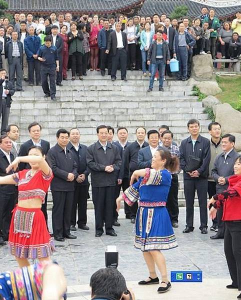 胡錦濤在此前主政的貴州露面時,不僅「沒清場」,而且還同民眾閒聊並觀看跳舞。(網絡圖片)