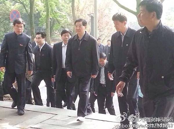 胡錦濤4月9日參觀湖南大學的岳麓書院。胡錦濤左面第一人為湖南省委書記徐守盛。(網絡圖片)