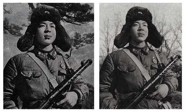1965年的雷鋒,原照片凌亂的灌木被換成了挺立的松柏。(網絡圖片)