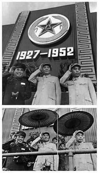 這張歷史照片中被刪掉的人是彭德懷。(網絡圖片)