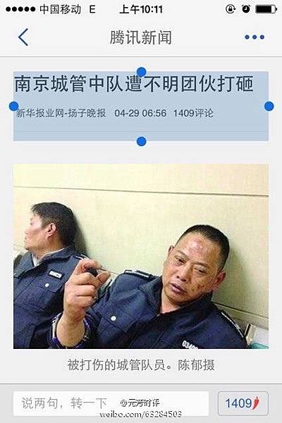 「為了幫助廣大人民群眾,那八個打城管的人辛苦了!」