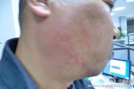 記者整個臉被打的後紅腫明顯,並有血印。(網絡圖片)