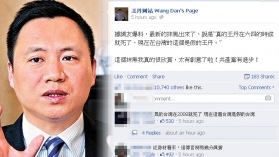 5月17日,「六四」學生領袖之一王丹在其Facebook(臉書)專頁發帖稱,「據網友爆料,最新的抹黑出來了,說是『真的王丹在六四的時候就死了,現在在台灣的這個是假的王丹。』」並在帖文中表示「這個抹黑我真的很欣賞,太有創意了啦!共產黨有進步!」王丹在臉書留言後,數小時即吸引逾萬人點讚(Like)。