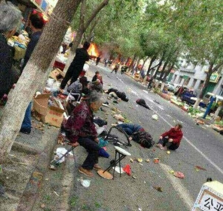 據悉,5月22日早晨7時50分左右,有兩輛越野車突然從早市的兩邊同時向中間碾壓並一路扔炸彈,由於當時趕集買菜的民眾特別多,以致很多民眾被當場碾壓致死,傷者更是不計其數。
