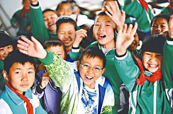 ■志願者近日探訪受雅安地震影響的學校時,獲學生熱烈歡迎(看似另有安排)。