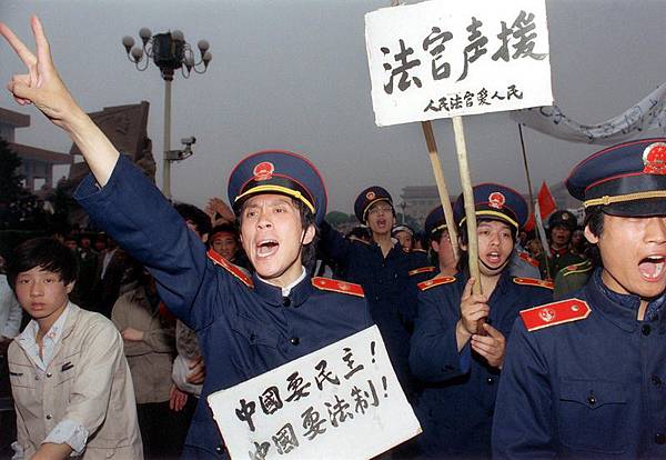 25年前,北京法院的法官也加入到「要民主、要法制」的行列之中;25年後,國際社會和大陸各界掀起對「六四」的紀念熱潮,聲討中共邪教,中共政權岌岌可危。(CATHERINE HENRIETTE/AFP)