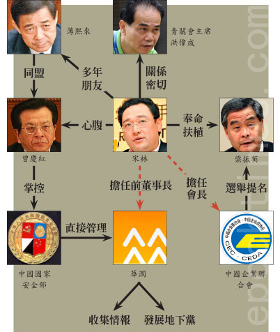 中共國家主席習近平借反貪打擊江澤民派系勢力之火燒到香港。當中和江澤民、曾慶紅、薄熙來等關係密切的中共在港頭號央企、華潤集團前董事長宋林落馬,引發香港紅色勢力大洗牌。