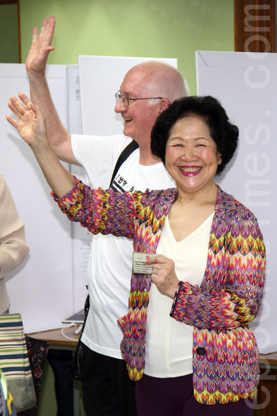 無懼中共和港府的打壓,香港6.22全民公投在6月20日啟動電子投票後,在6月22日正式進入實體投票階段;截至晚上12時,連同實體票站投票數字,已有705,254投票,民意空前踴躍,圖為前政務司司長陳方安生到銅鑼灣教協投票。(潘在殊/大紀元)