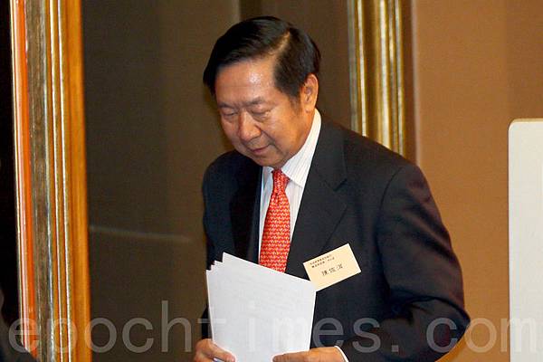 港澳辦前副主任陳佐洱在6月20日現身香港,自圓其說解釋白皮書未收緊香港自治權。(潘在殊/大紀元)