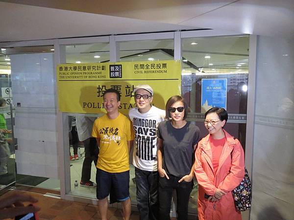 香港藝人黃耀明穿著與何韻詩同往港大投票。(和平佔中臉書)