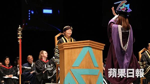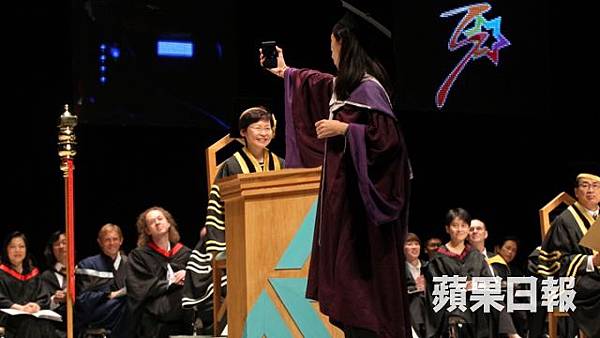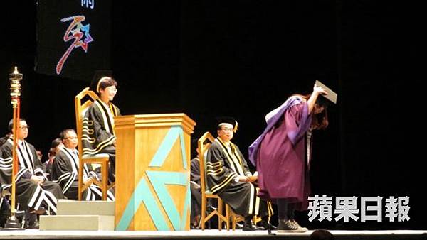 署理行政長官林鄭月娥今日主持演藝學院畢業禮,向畢業生頒授學位,期間多名上台的畢業生,向林鄭月娥做出「交叉」手勢,部分畢業生沒有向林鄭月娥鞠躬,並用屁股向著林鄭,只向台下觀眾鞠躬,林鄭月娥全程沒有大太反應,長時間保持微笑。