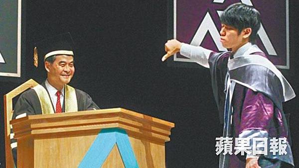 去年梁振英主持畢業禮,同樣有學生以各種手勢向他表達不滿。