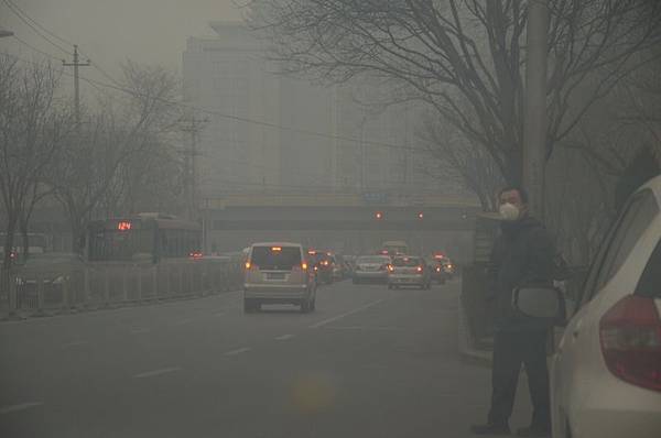 今年2月北京出現了一年來最嚴重的陰霾天氣,空氣質量為「極重污染」或「危險」級別,醫院呼吸科急診爆棚。圖為陰霾天氣下的北京街道。(大紀元資料室)