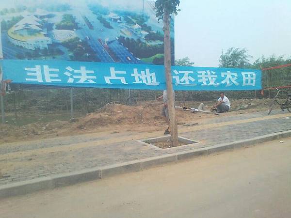 據悉,磁縣政府從去年7月開始強行徵收屯莊村中華大街以東、屯莊村以西100多畝耕地,在未通知村民的情況下,僱傭60個不明身份的人,強行把綠化帶樹木攔腰鋸斷,並毆打村民。