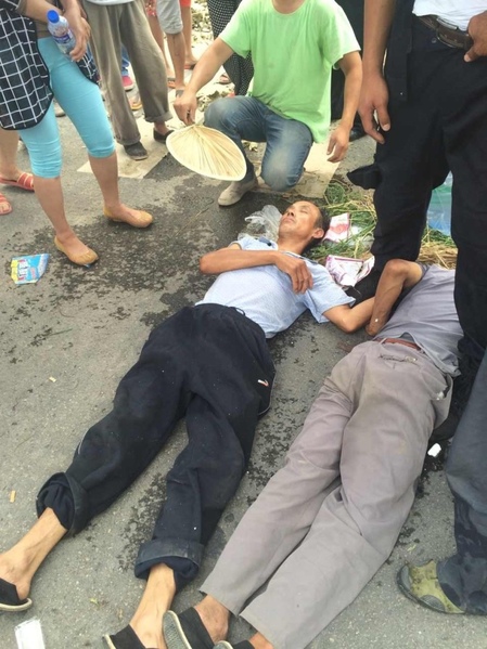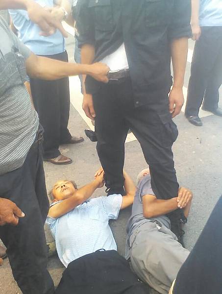 閆姓村民說:「一看過來這麼多村民,打人特警馬上發動車子準備逃跑。當時,正好一位老爺爺拽著一位特警不讓他走,村民想知道是誰指使的,要討個說法。那些躺在地上的都是年齡較大的村民,都是被特警用電棒電暈的,皮肉傷的也很多。」